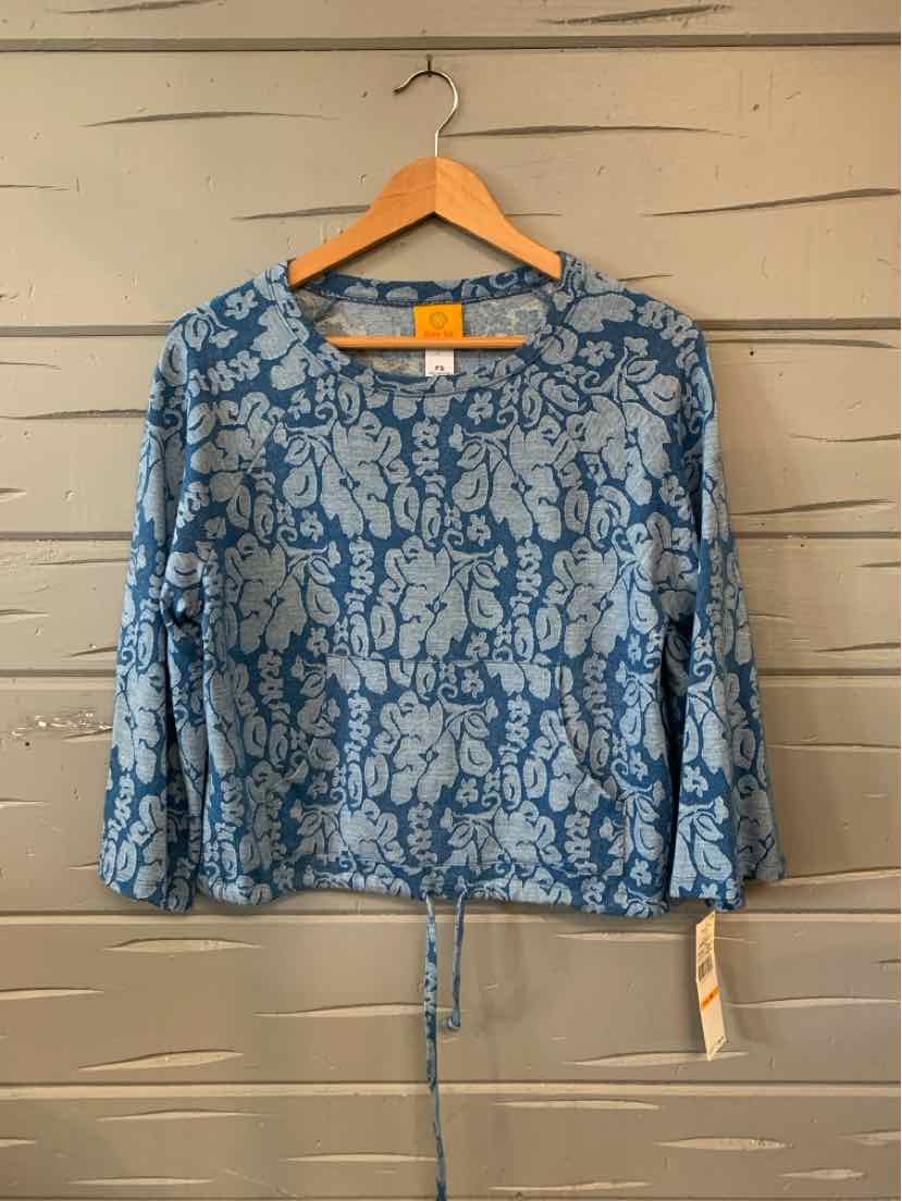 BL/LIGHT BL PAISLEY PRINT TOP WITH DRAW STRING AT WAIST