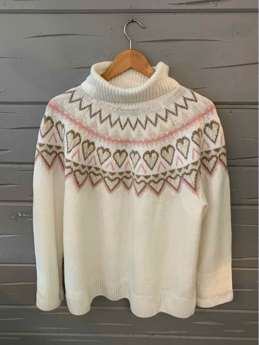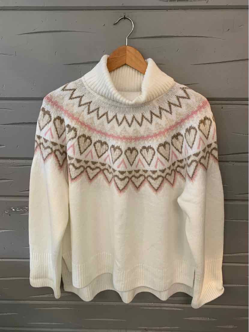 WH/TAN/PK FAIR ISLE TURTLENECK SWEATER W/ HEARTS