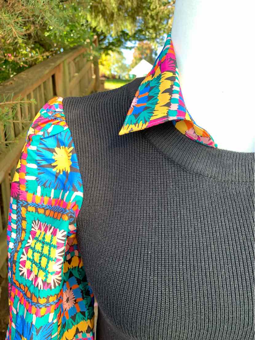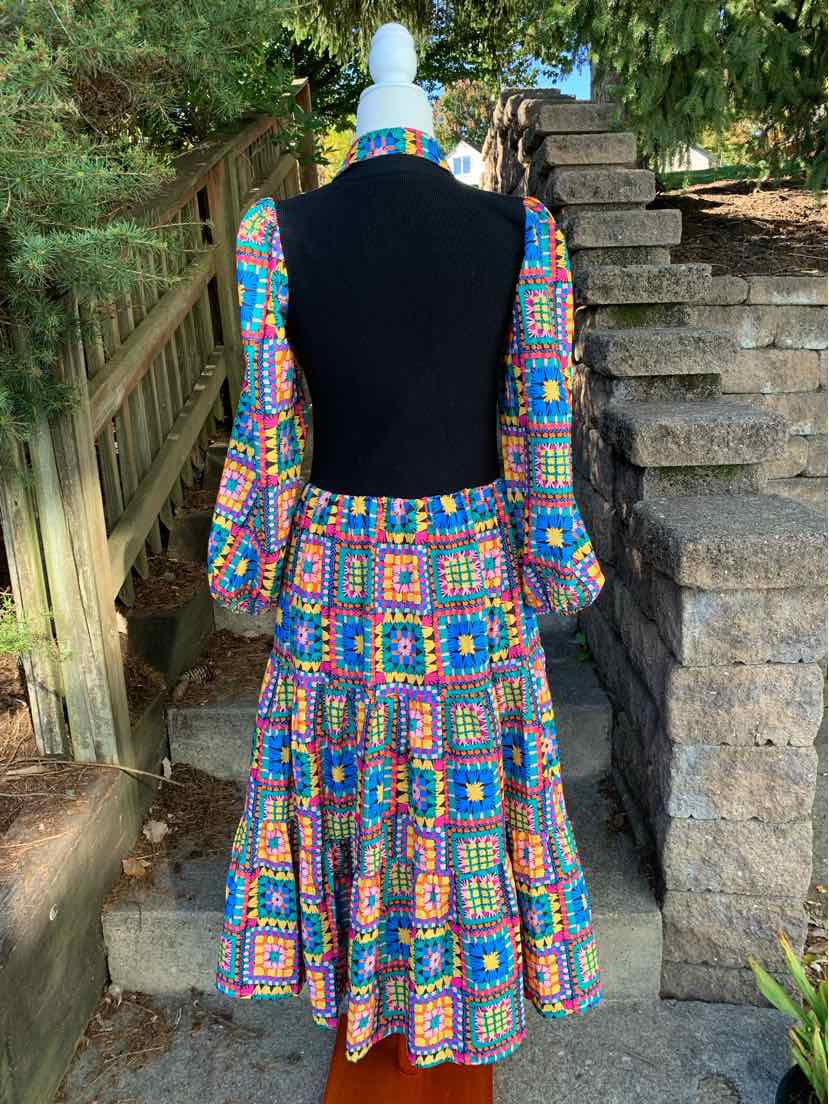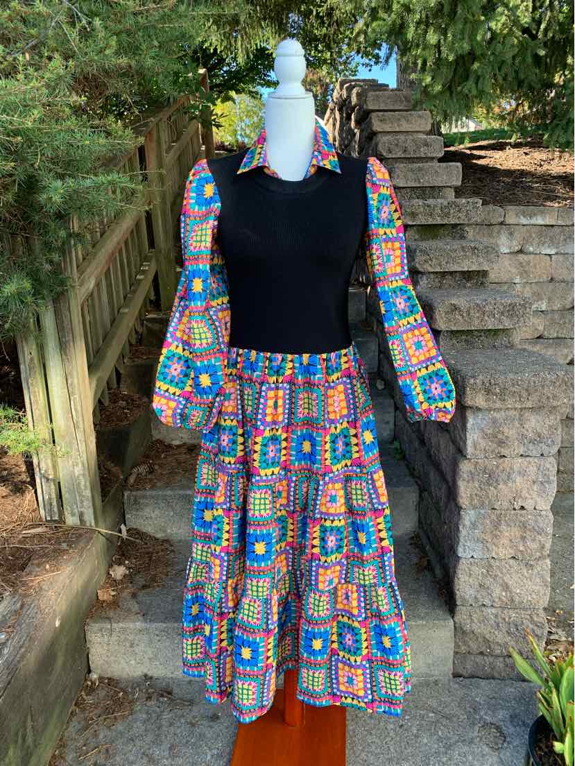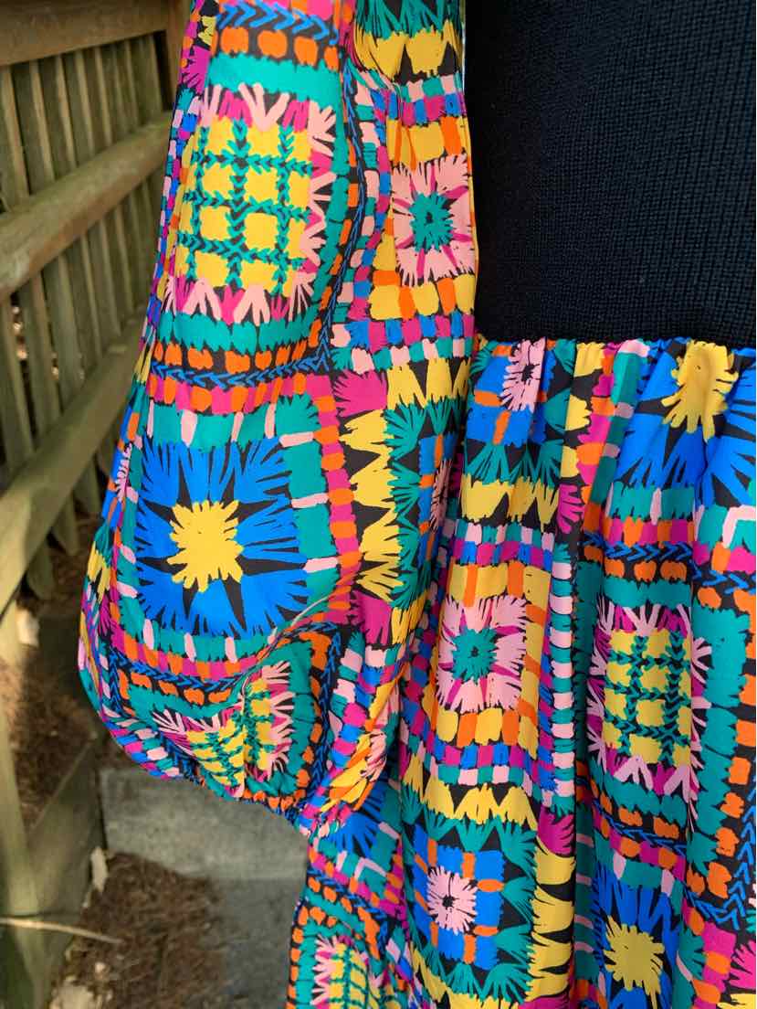 MULTI PATTERN MAXI DRESS, W/ BK KNIT BODICE