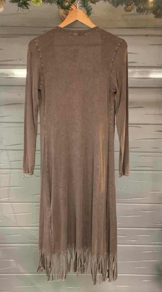 CHOCO BR L/S OPEN LONG CARDIGAN W/ FRINGE