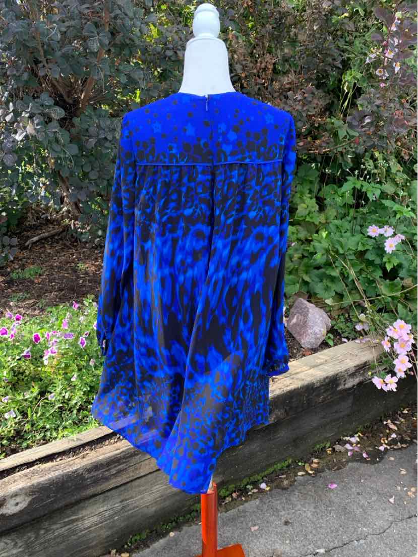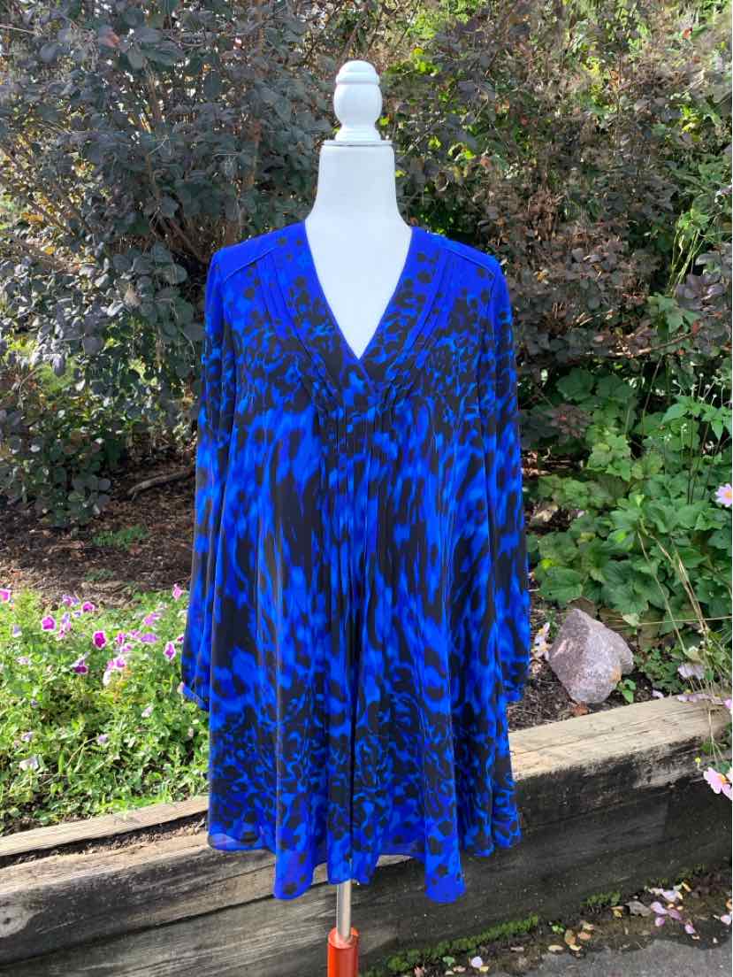 BL/BK L/S CHEETAH PRINT DRESS, V NECK