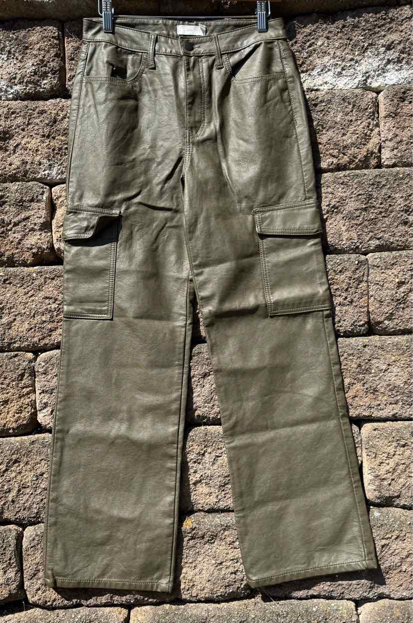 DARK GR UTILITY STYLE PANTS, PLEATHER