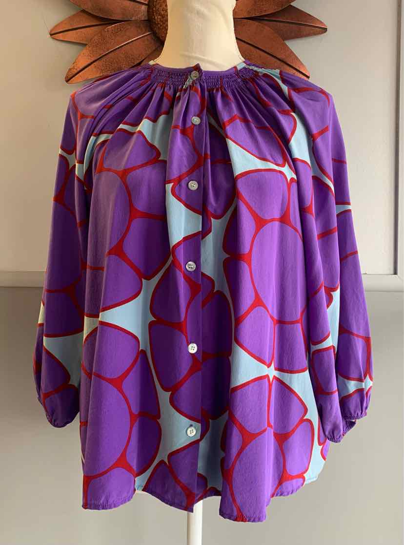 PL/RD/BL 3/4 SLEEVE FLORAL PRINT TOP, LARGE PRINT