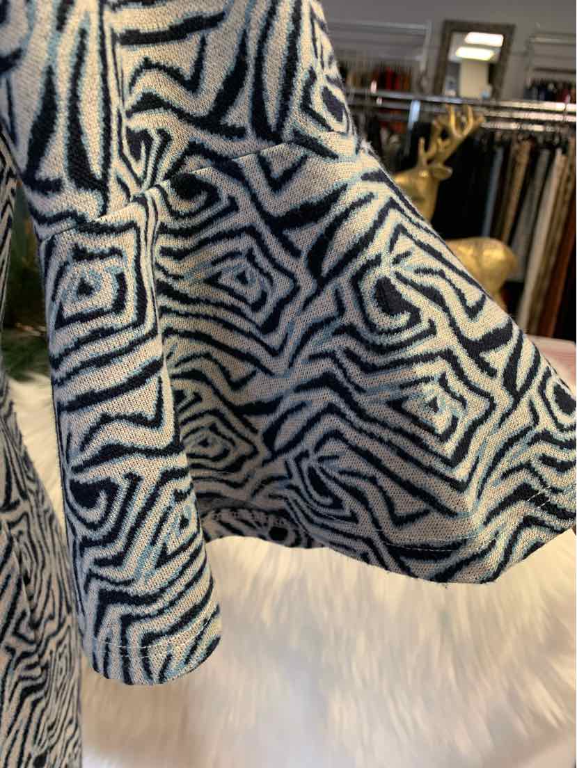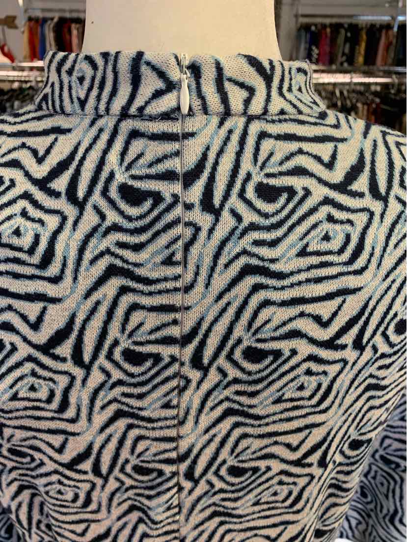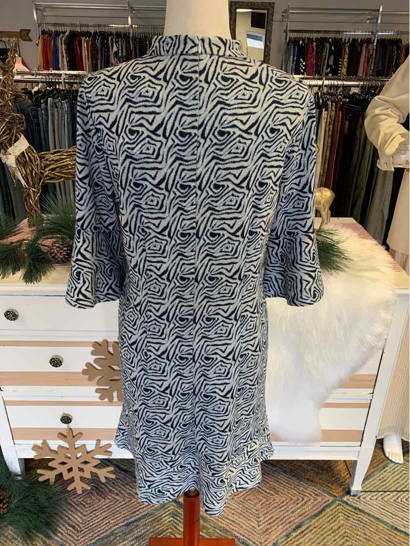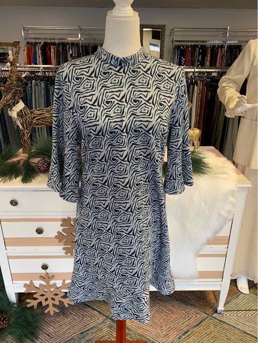 NY/WH 3/4 SLEEVE GEOM PRINT DRESS, HIGH NECK