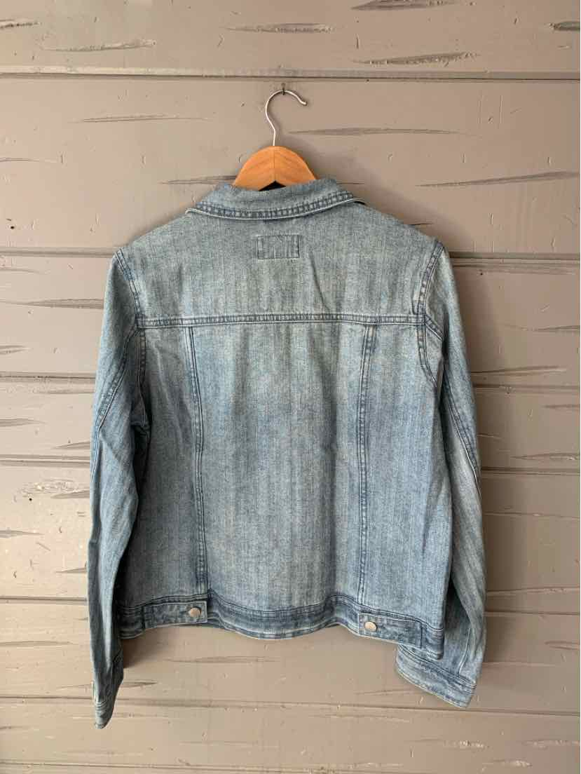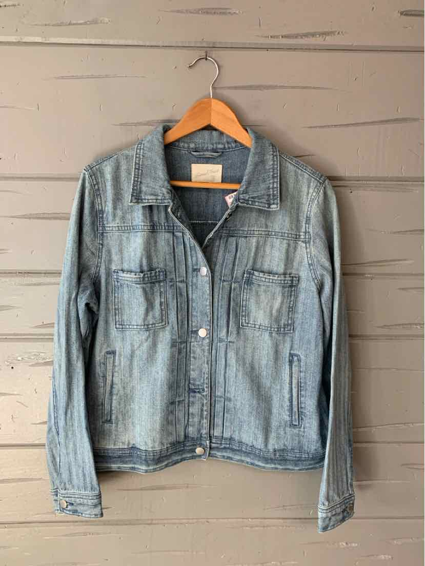 LIGHT BL TEXTURED, PLEATED JEAN JACKET
