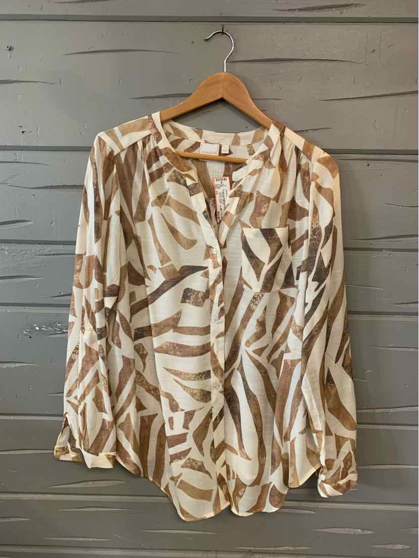 CR/BR L/S ZEBRA PRINT TOP, BUTTON UP